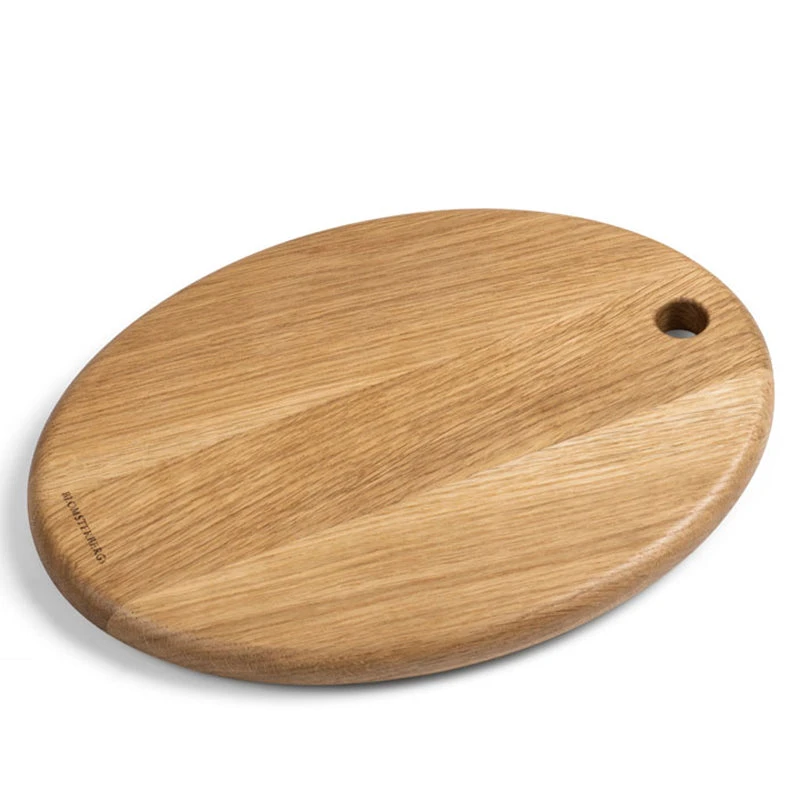 Lækkert ovalt skærebræt egetræ med afrundede kanter og hul til ophæng.Skærebrættets størrelser gør at det også kan bruges til en lækker anretning eller et nybagt brød og dermed også kan bruges som flot serveringsbræt.Vedligeholdes med smagsneutral olie.