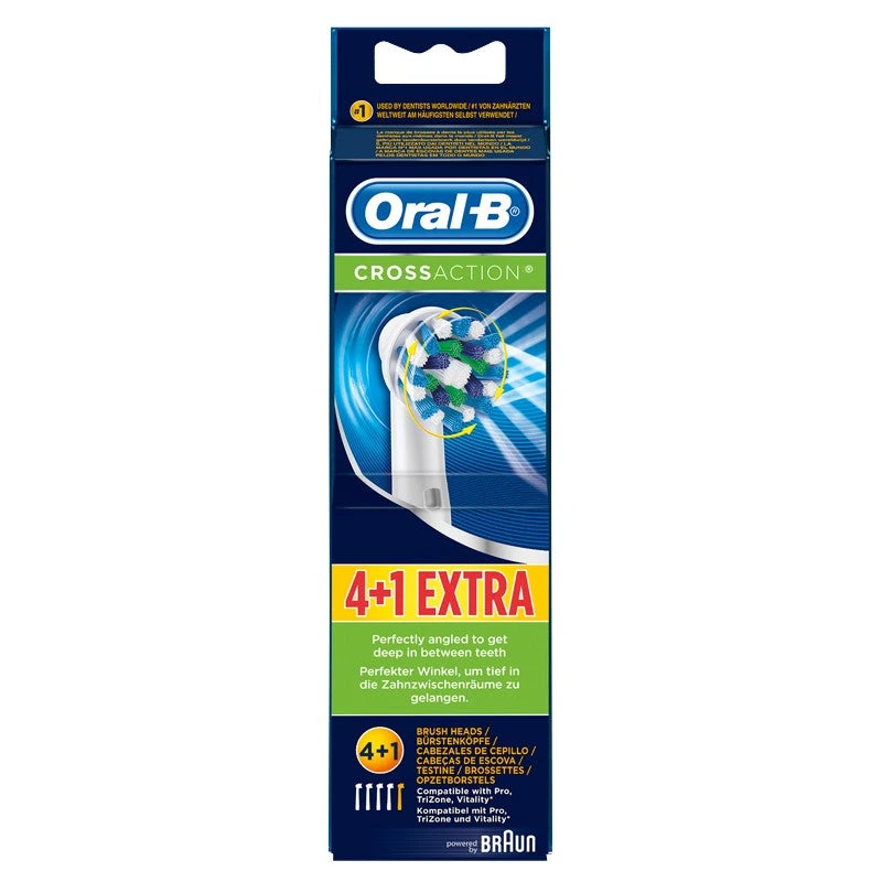Oral-B tandbørste hoveder. CrossAction. 4+1 pakke. passer til alle tandbørster.
