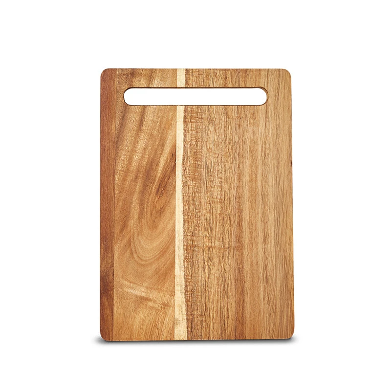 rektangulært skærebræt i akacietræ med indvendigt udskåret håndtag.
