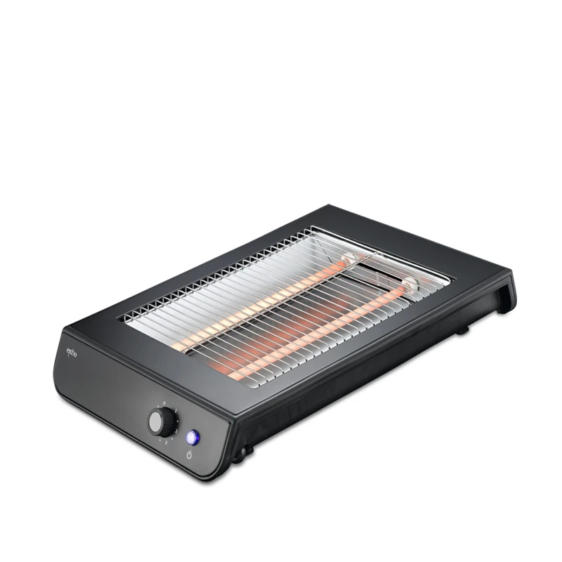 Flad brødrister fra Exido med timerfunktion. Krummebakke for nem rengøring.