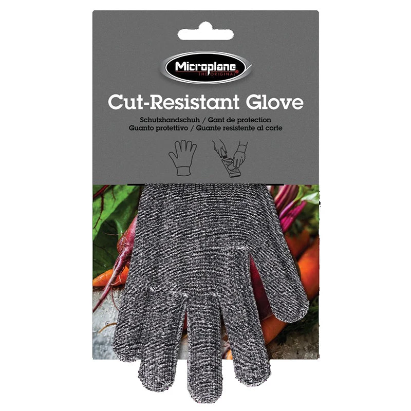 Den skæreresistente handske er udviklet specielt til at beskytte hænderne mod Microplanes skarpe skær, du ikke længere behøver bekymre dig så meget, når du arbejder med skarpe blade fra rivejern, mandolin eller køkkenknive. Handsken passer til begge hænder og kan strækkes til at passe de fleste håndstørrelser. Handsken kan vaskes i både opvaske- og vaskemaskinen.
