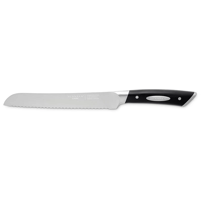 Brødkniven er både god til opgaver hvor der skal skæres brød, boller men er også rigtig god til at skære i sprød flæskesvær. Også når der skal hakkes chokolade eller mandler er brødkniven god da takkerne nemt får fat i de emner der skal hakkes. Scanpan Classic knivserien er fuldsmedet knive i høj kvalitet. Konisk slevet knivsæg og forbedret slibeteknik sikrer kniven optimal skarphed og levetid. Gør den også nem at slibe/ vedligeholde. Danske design Perfekt vægtfordeling og balance med ergonomisk håndtag der giver et godt greb.