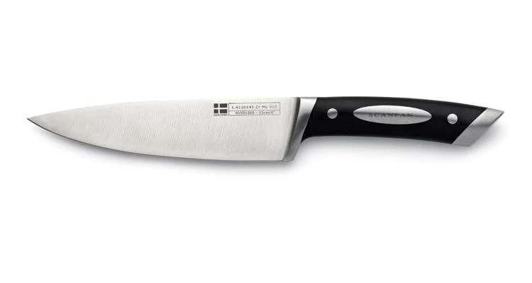 Fuldsmedede knive af fineste kvalitet, tysk rustfrit stål Enestående, konisk slebet knivsæg. Individuel hårdhedstest efter Rockwell®-metoden, hårdhed 57. Originalt dansk design. Perfekt vægtfordeling og balance. SCANPAN® kvalitet. Ergonomisk håndtagsdesign. Knivsæggene er slebet i 20º. Tåler opvaskemaskine dette anbefales dog ikke