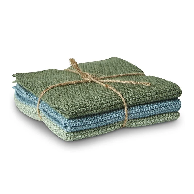 Strikket Karklud 25x25cm, 3 Stk. Grøn/Blå