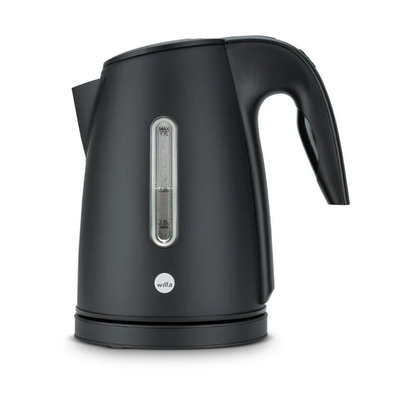 1,7 liter elkedel fra Wilfa model WK3S-2000. Kedlen har et stilrent og enkelt design i en mat sort farve, som pynter flot på køkkenbordet. Praktisk ledningsopbevaring, tydelig vandstandsindikator og skjult varmelegeme,